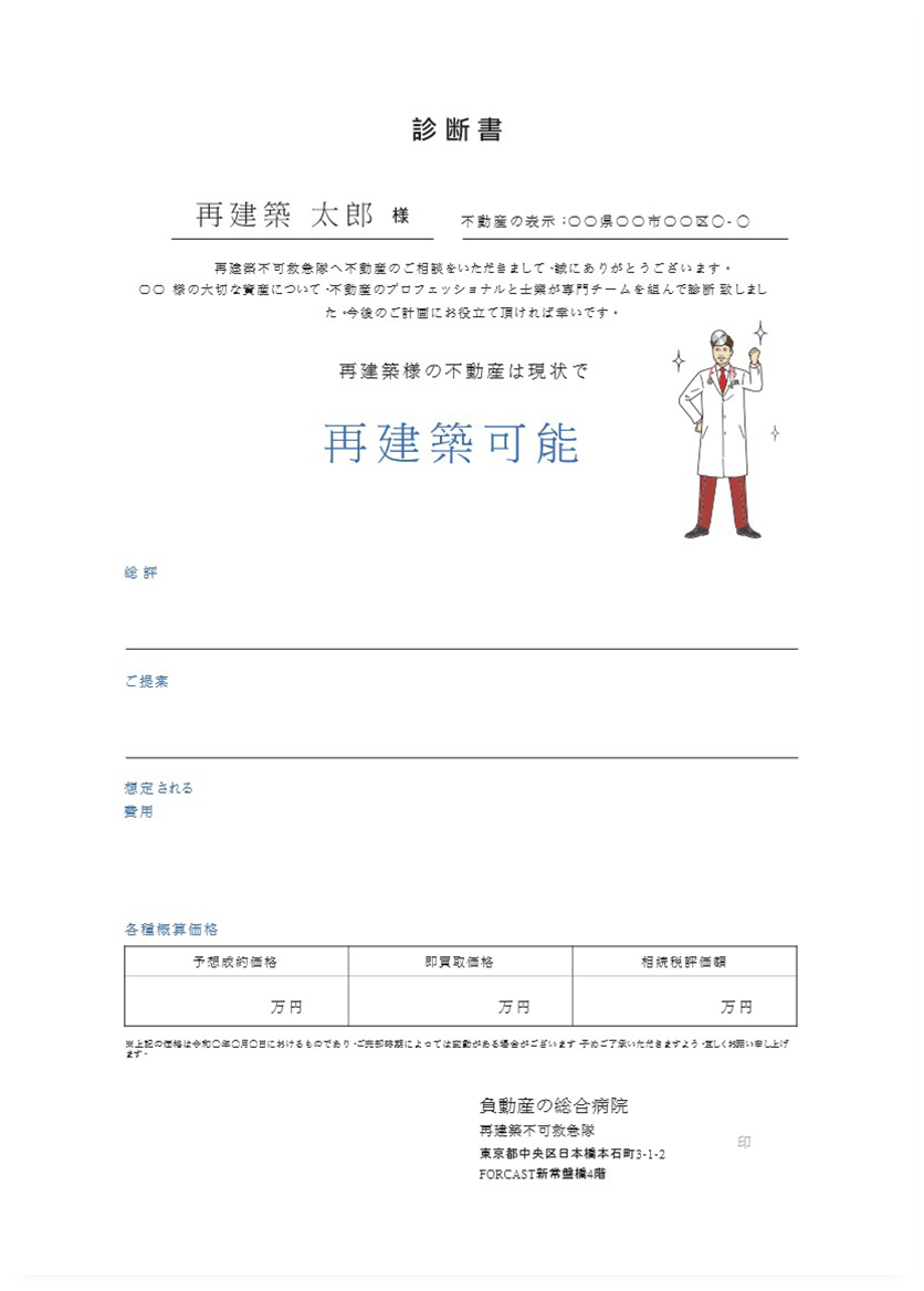 プロの目でしっかり診断した、オリジナル診断書を発行いたします。