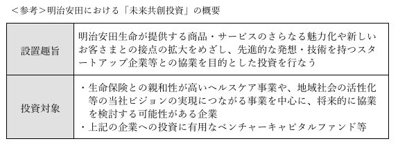 本出資は、明治安田が2022年9月に設立した「未来共創投資」における直接投資の一環として行われております。