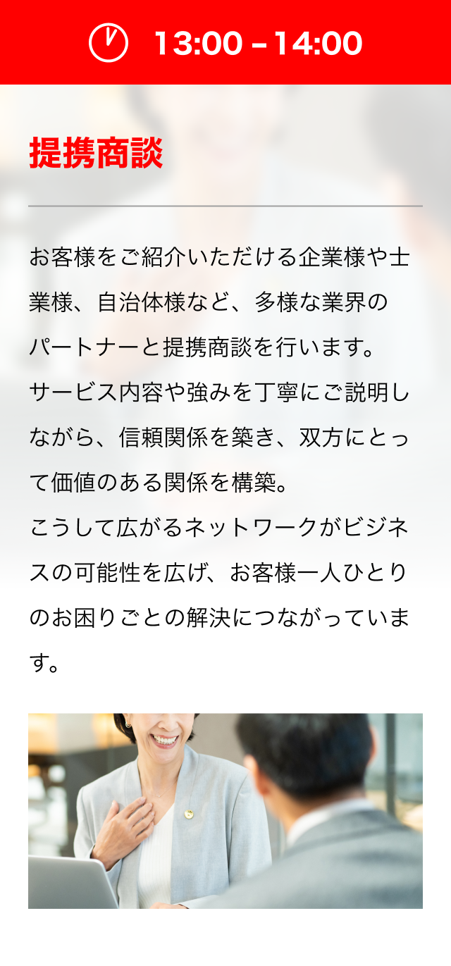 お客様へのご提案の流れや接客スキルを、ロールプレイングを交えて実践的に習得していただけます。